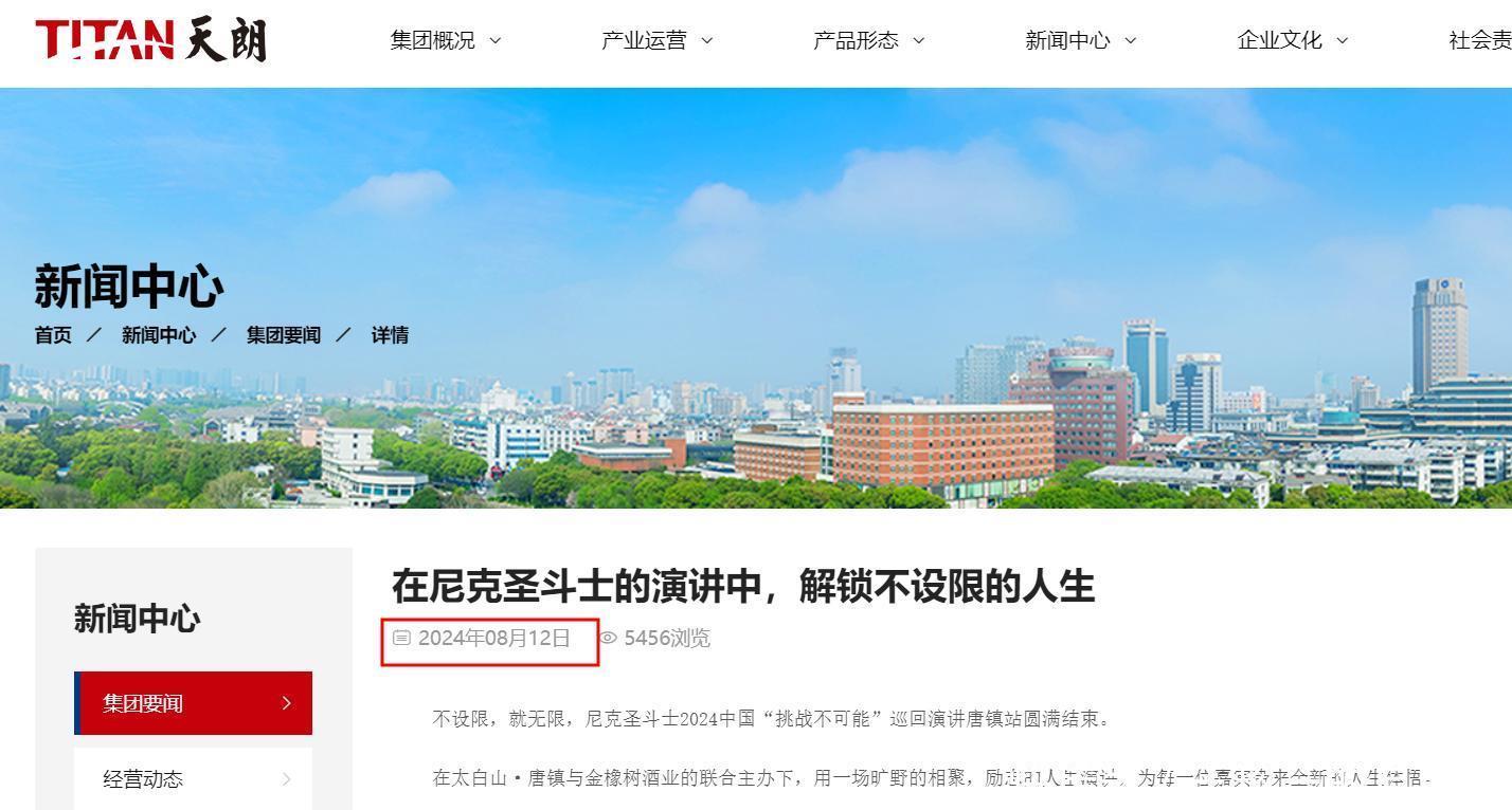 在天朗控股集团官网查询可以发现,去年8月是孙茵最后一次公开露面,当时她出席了尼克圣斗士2024中国“挑战不可能”巡回演讲唐镇站的活动,彼时她还曾上台致辞。从曝光出的现场照片看,她当时精气神看起来还不错。