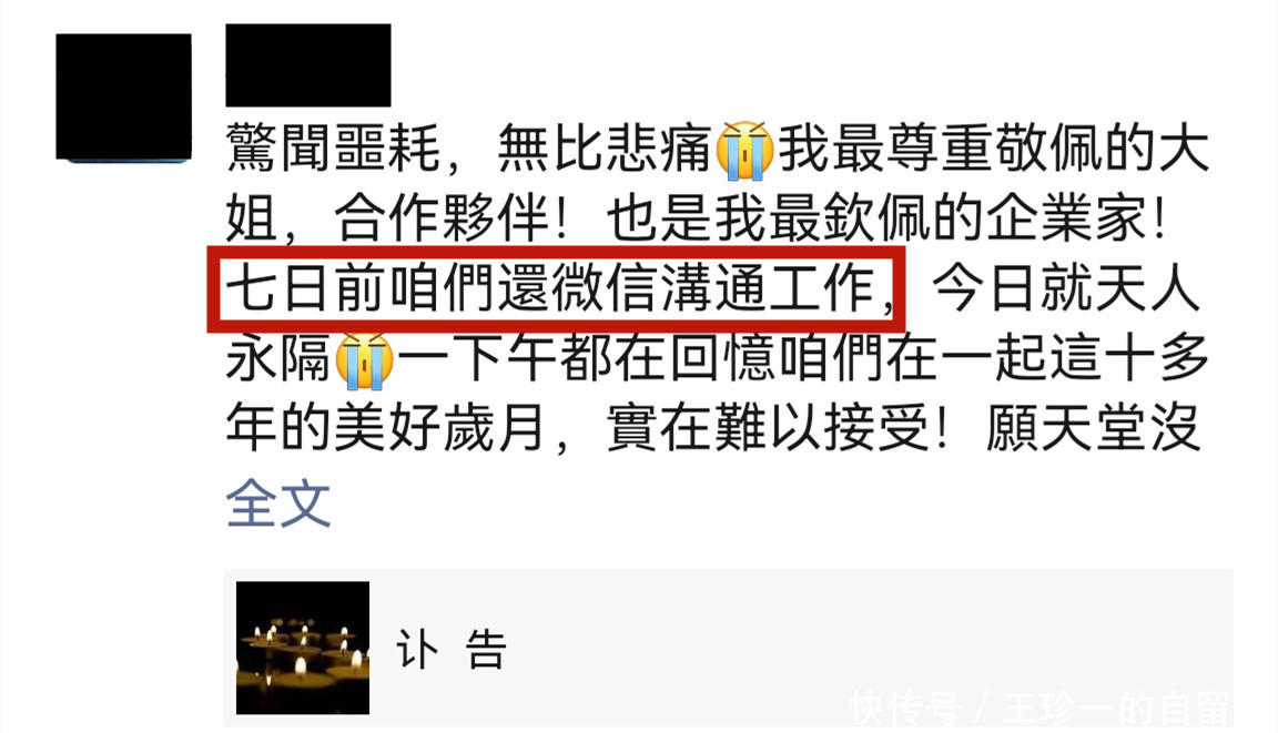 其中有一位与孙茵合作过的企业家在悼念文字中透露,在孙茵去世7天前,他们还曾在微信上沟通工作。